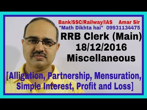 Miscellaneous-01:RRB Clerk (Main) 18/12/16 {Alligation, Partnership, Men...