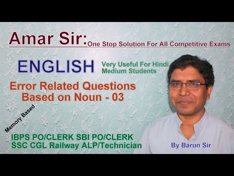 "Common Error (Noun-03) English SBI PO IBPS PO SSC CGL Railway by Barun