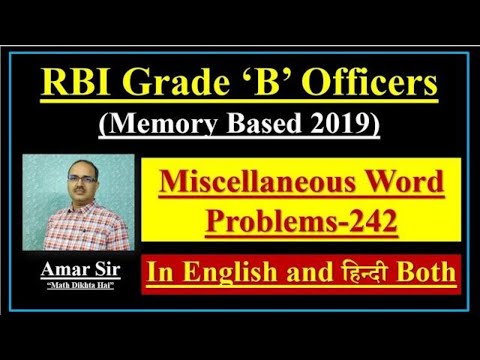 Video Episode on Miscellaneous Word Problems, asked in RBI Grade B Officers Exam (Memory Based-2019). The episode is in English and हिन्दी both, which contains Five Questions of the exam. All the questions have been
